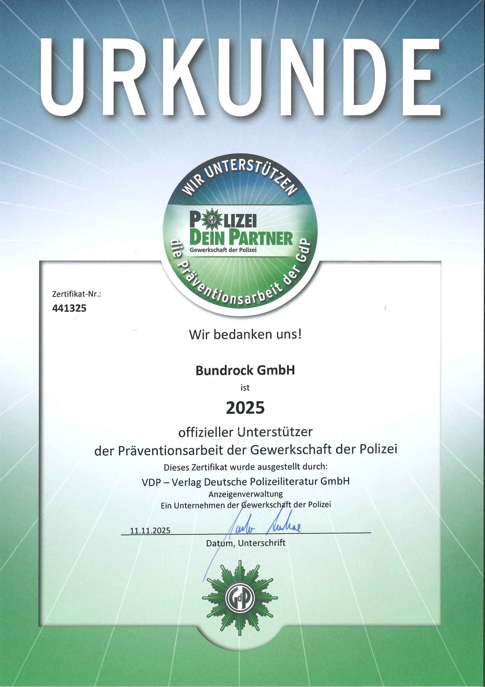 Wir sind offizieller Unterstützer der Präventionsarbeit der Gewerkschaft der Polizei.